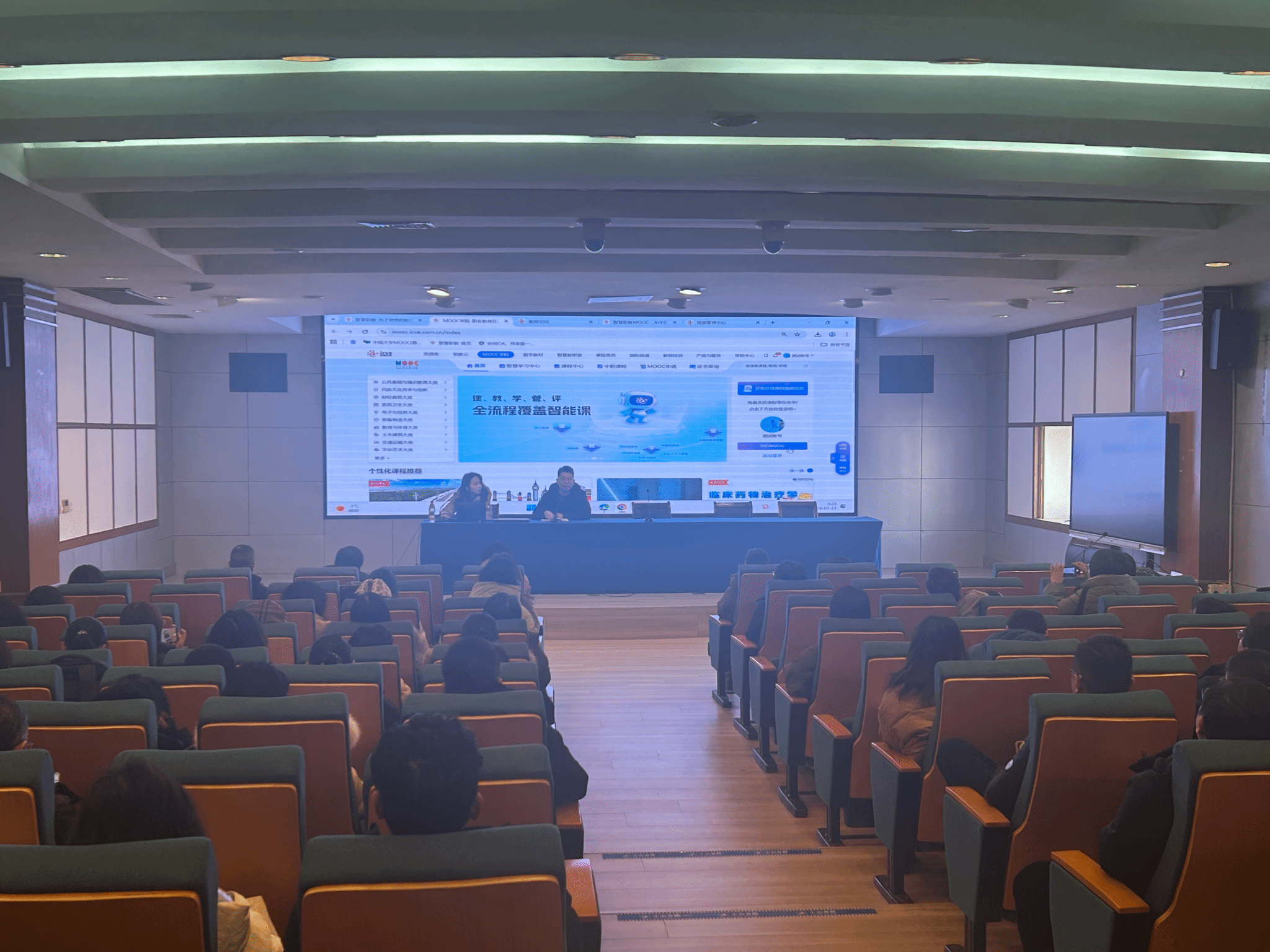 1月21日上午,我校在强毅楼学术报告厅举办基于AI智能体的智慧职教平台培训。智慧职教平台江苏课程中心徐晓红老师受邀担任主讲人,各教学单位分管领导、骨干教师等100余位教师参与培训。培训由教务处副处长窦贤振主持。