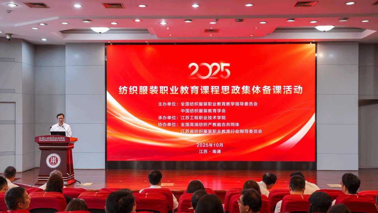 10月17日至18日,由全国纺织服装职业教育教学指导委员会、中国纺织服装教育学会联合主办,我校承办的2025全国纺织服装职业教育课程思政集体备课活动成功举办。中国纺织工业联合会会长孙瑞哲,江苏省政协原副主席、江苏省张謇研究会名誉会长、江苏省国际文化交流中心理事长罗一民,南通市人民政府副市长于立忠,全国纺织服装行指委主任倪阳生,中国纺织服装教育学会会长纪晓峰,江苏省职业学校思政课建设协作组代表等领导出席活动。活动以“织德育新篇,纺技能未来”为主题,吸引了来自全国80余所中高职院校、政府部门、行业企业及研究机构的300余名代表参与,共同探索新时代纺织服装职业教育育人新路径。活动由校党委副书记、校长张忠主持。