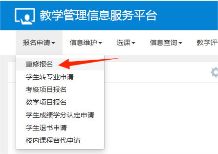 2.报名申请 → 重修报名