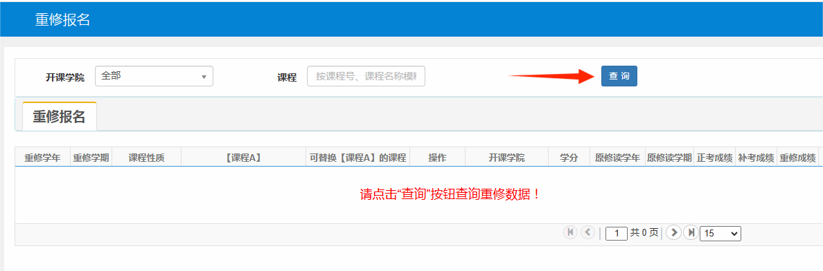 3、重修报名 → 查询
