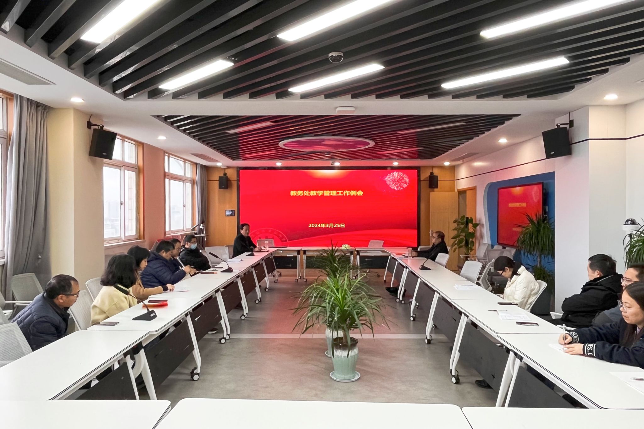 3月25日下午,2023-2024学年第二学期教务处教学管理工作例会在崇謇楼704会议室召开,会议由教务处副处长曹留峰主持,教务处全体成员参加会议。