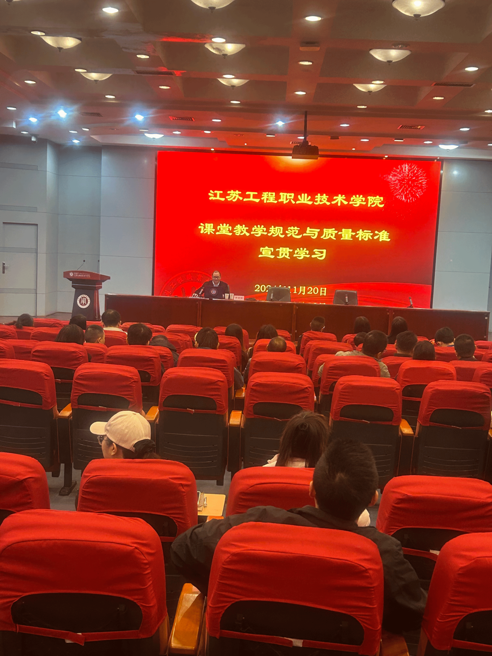 根据《江苏工程职业技术学院主要教学环节质量标准》,曹留峰详细围绕备课、课堂教学、课程考核、实践教学等九个重要环节,逐一阐述了各项质量标准的具体内容和要求。面向《江苏工程职业技术学院教师课堂教学基本行为规范》,他分别从课前、课中和课后三个阶段进行解读。总结讲解时,他指出课堂教学是教学工作的核心环节,为进一步提高技术技能型人才培养质量,教师应严格遵守教学纪律,正确处理好教书与育人、知识传授与能力培养、教与学的关系,确保课堂教学的质量和效果。