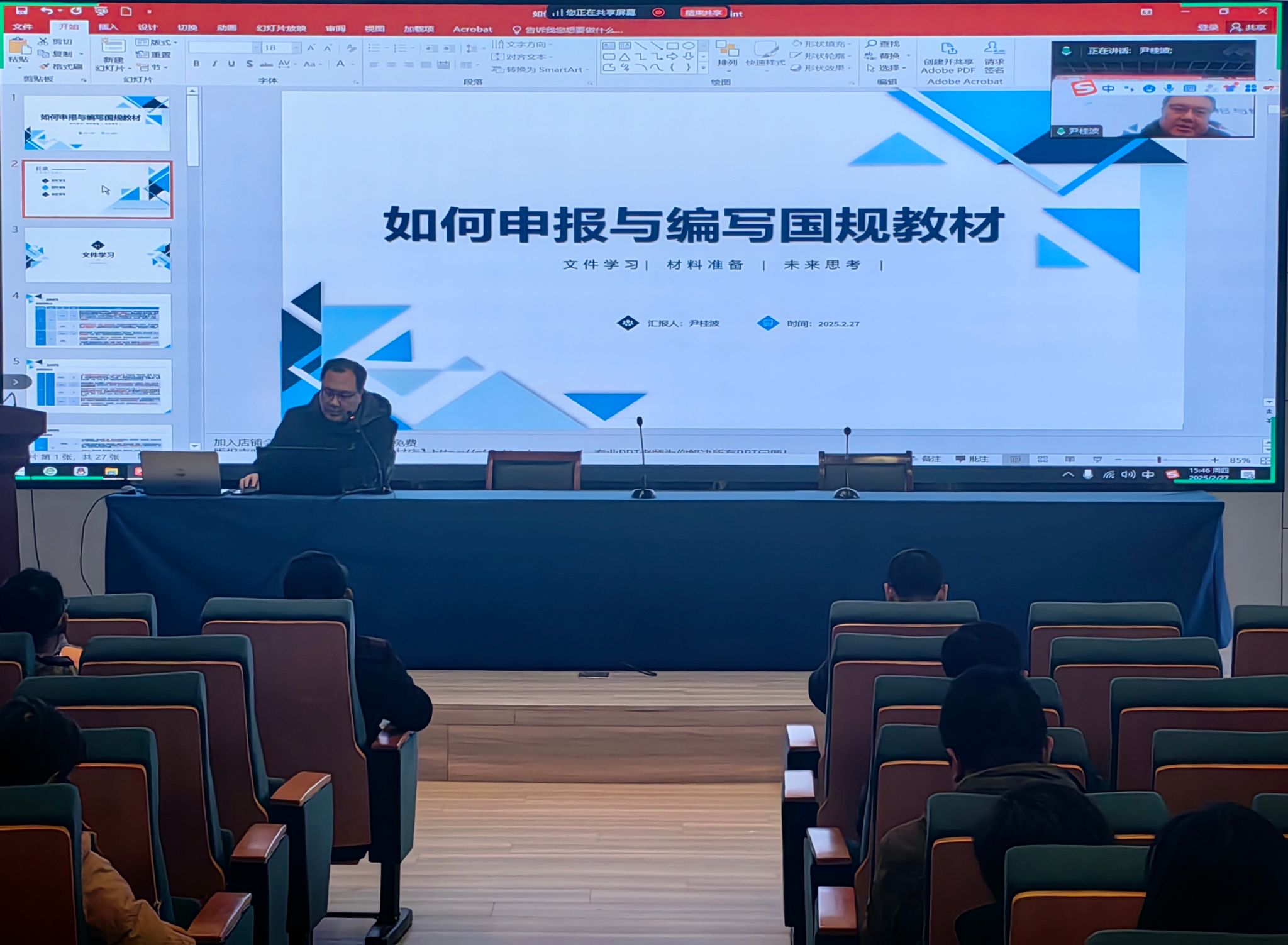 2月27日,为推动国家规划教材申报与编写工作,学校组织开展了第二批“十四五”国家规划教材申报与建设校内培训会,邀请纺织服装学院尹桂波教授作主题报告。培训会在强毅楼报告厅举行,本次申报国家规划教材主编、团队成员以及双百计划教材主编、校本教材主编等近50人参加培训。会议由教务处副处长丁永久主持。