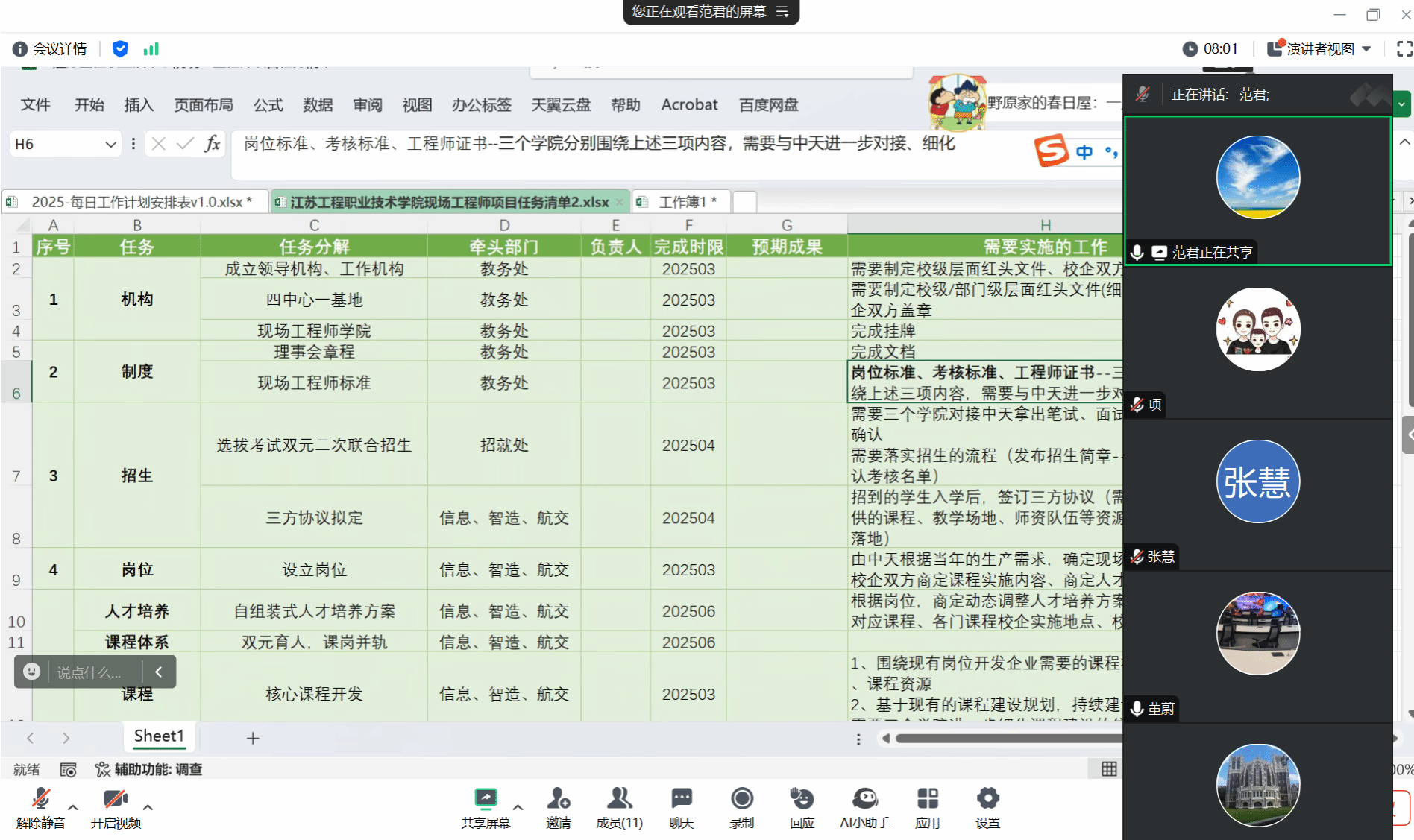 范君首先对学校与中天科技集团有限公司的对接情况做了详细汇报,学校通过编制精细任务清单、定期调度解决难点、多轮实地走访调研、咨询专家论证研讨等方式,推进了现场工程师项目。随后,与会人员围绕人才培养方案、教师教学参与、校企课程共建、企业人才需求等关键议题展开广泛而深入的讨论。