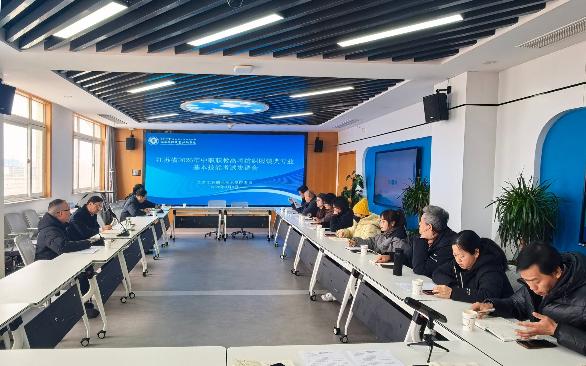 为切实保障2026年江苏省中职职教高考纺织服装类专业基本技能考试平稳、有序、规范开展,3月8日下午,我校在教务处大数据中心召开考试工作协调会。考务管理组、后勤保障组、安全保卫组、信息技术组、监察巡视组、宣传报道组等相关工作组负责人及成员参会,校长张忠出席会议并讲话。会议由教务处副处长黄海涛主持。