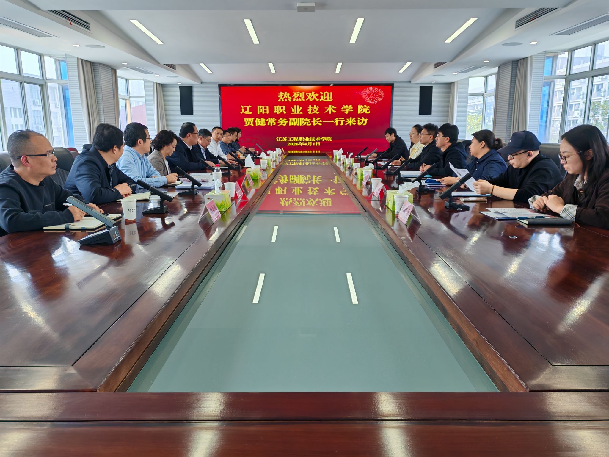 会上,尹桂波对贾健一行的到访表示热烈欢迎,并介绍了我校的办学历史、专业建设服务区域产业发展以及产教融合等方面的情况,分享了我校在职业教育人才培养和校企合作方面的实践经验。他表示,希望以此次交流为契机,进一步深化两校在专业建设、人才培养等方面的互学互鉴。贾健对我校的热情接待表示感谢,介绍了辽阳职业技术学院的办学基本情况、当地产业发展现状及此次调研的重点内容。他表示,期待通过交流实现优势互补、共同发展。