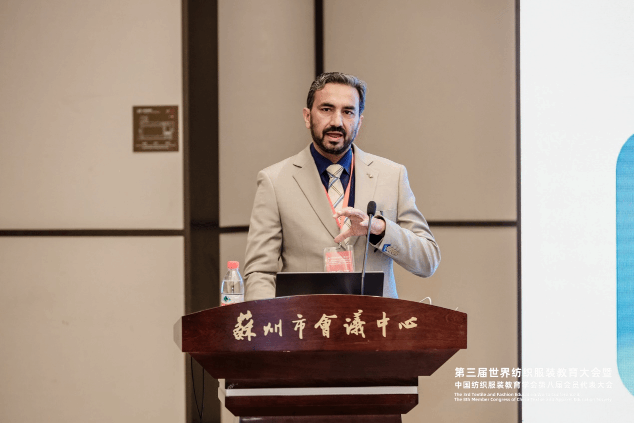 9日上午,我校承办的职教分会议程包括国际专家报告和国内专家报告两个阶段。第一阶段会议由学校党委书记秦志林主持。他指出,世界纺织服装教育大会是纺织服装职业教育界的国内外专家、同仁汇聚一堂进行交流合作的重要平台。在纷繁复杂的国际局势中,纺织服装职业教育的合作和发展传递出世界人民“谋共同永续发展、做合作共赢伙伴”强音。国际纺织服装贸易稳步回升,“一带一路”合作持续深化,人才培养项目推陈出新。纺织服装职业教育在促进国际教育合作和可持续发展方面做出了卓越贡献。他倡导,深入推进纺织服装职教领域交流合作,以数字化、人工智能等技术赋能纺织服装职业教育,构筑全球纺织服装职教人共建共享、休戚与共的命运共同体。