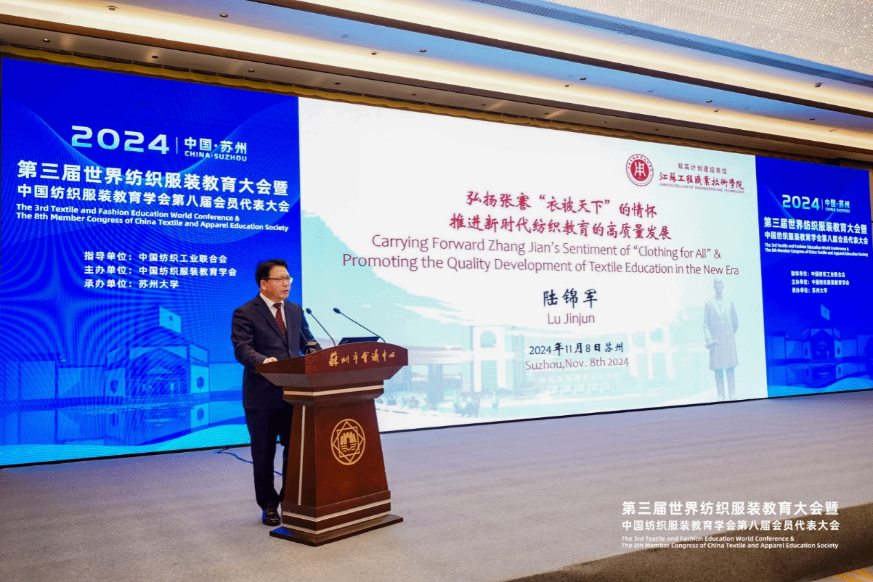 8日上午,第三届世界纺织服装教育大会开幕。在主会场报告环节,我校原校长、总督学陆锦军以“弘扬张謇‘衣被天下’的情怀,推进新时代纺织教育的高质量发展”为题,汇报了学校传承先校长张謇纺织职业教育进行办学的生动实践。他概述了张謇职教思想的“生计论”等论点,介绍了学校传承张謇情怀推进纺织教育创新发展的先进经验,并展望了新质生产力视角下学校改革发展方略。