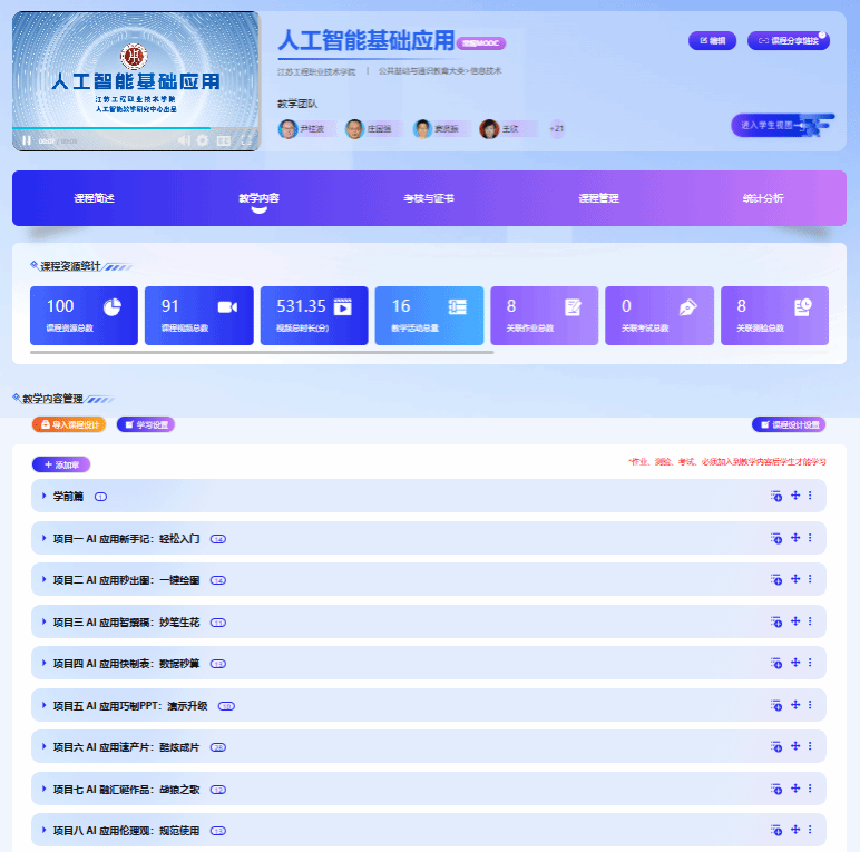 会上,尹桂波系统阐述了我校在人工智能微专业开设、人工智能在线课程建设、人工智能教材出版以及智慧教学管理平台应用等领域的战略布局与建设成果,重点发布了由信息工程学院、艺术设计学院和基础教学部二十余位教师联合打造的《人工智能基础应用》在线通识课程。该课程资源丰富且实用性强,采用项目化、情景化模式,所有案例均源自真实办公与生活场景,适合零基础人员快速入门,面向全校师生和社会学习者开放。